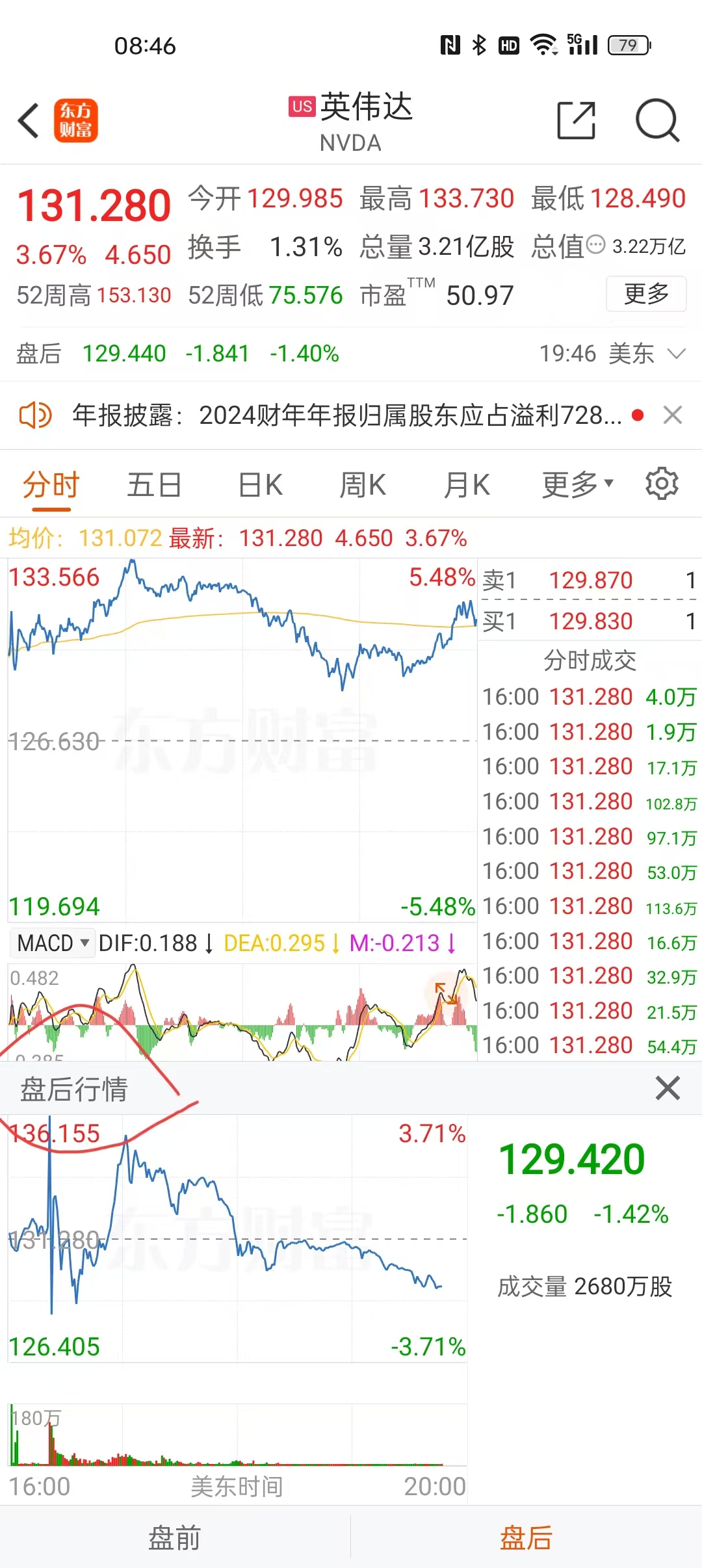 财报公布前,收涨近3.7%的英伟达股价盘后曾涨超2%,财报公布后,股价多次在涨跌间交替,盘后先曾转跌并跌近2%,转涨后涨近2%。有评论称,盘后股价曾转跌显示,投资者还是觉得英伟达业绩带来的惊喜不够大。