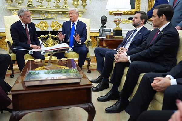 当地时间10月7日,美国总统特朗普在白宫与到访的加拿大总理卡尼举行会谈,双方就贸易和加沙等议题进行讨论。
